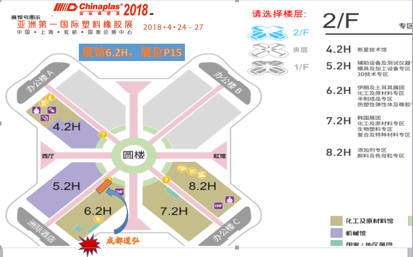2018年4月24-27日,成都道弘實業有限公司將參加在上海虹橋國家會展中心舉辦的第三十二屆中國國際塑料橡膠工業展覽會(CHINAPLAS 2018),這將是我司向全世界商業伙伴展示公司形象和產品實力的絕佳平臺。